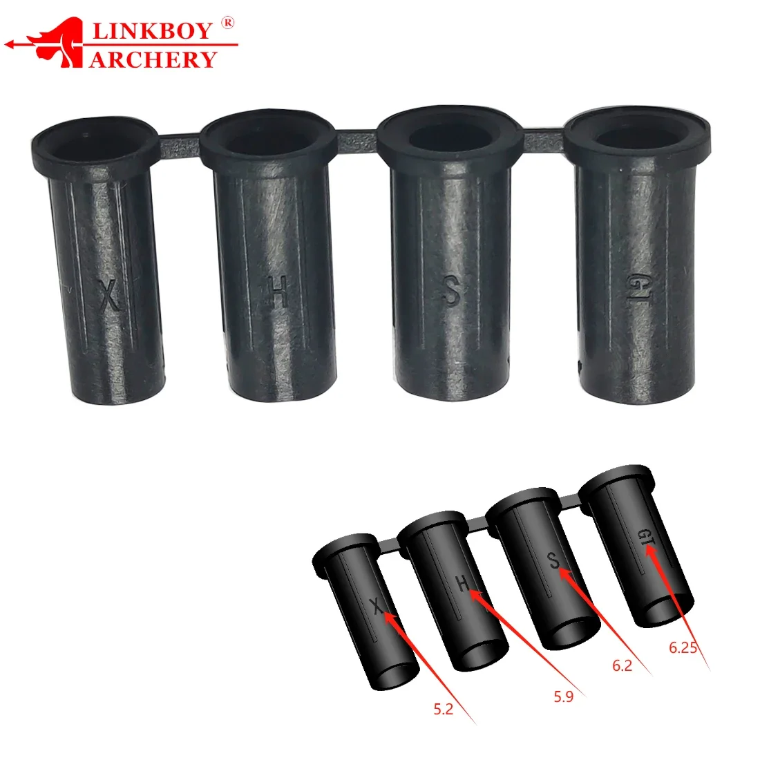 Our Crossbow Lighted Nocks come with X, H, S, GT Bushings, ensuring a perfect fit for arrows of sizes .165"/.204"/.233"/.244"/.246".