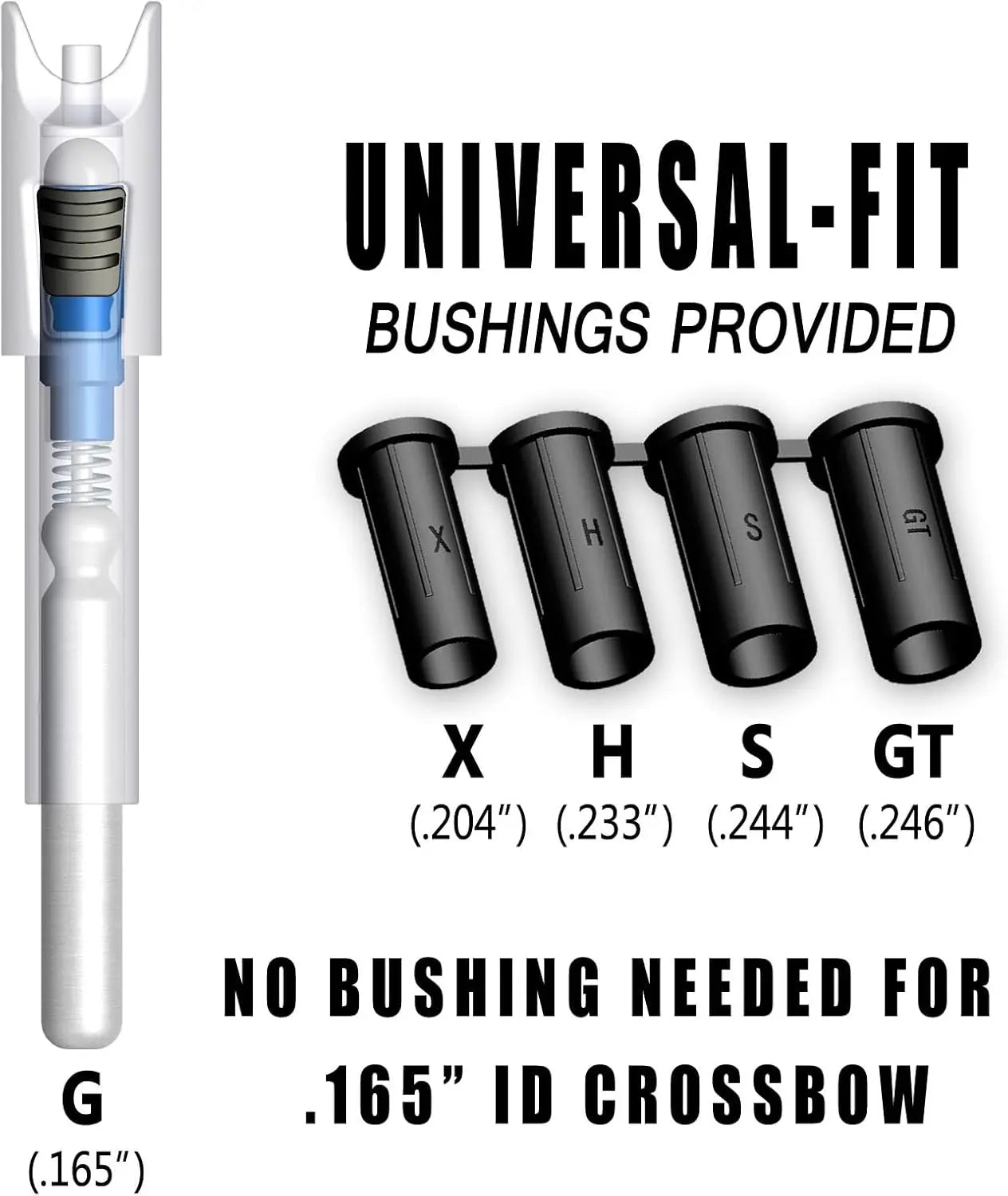 Our Crossbow Lighted Nocks come with X, H, S, GT Bushings, ensuring a perfect fit for arrows of sizes .165"/.204"/.233"/.244"/.246".