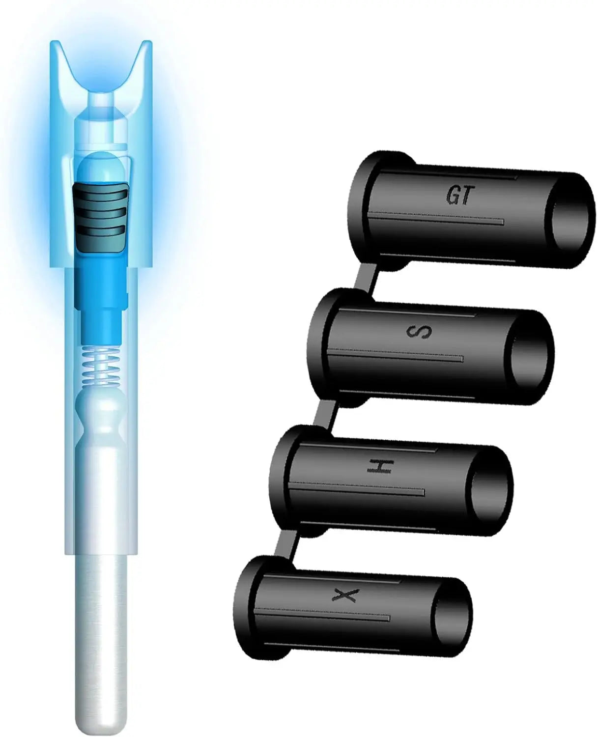 6PCS Lighted Nocks with .165 .204 .233 .244 .246 Inside Diameter with X, H, S, GT Bushings Half-Moon light up knocks - 6pcs blue is backordered and will ship as soon as it is back in stock.