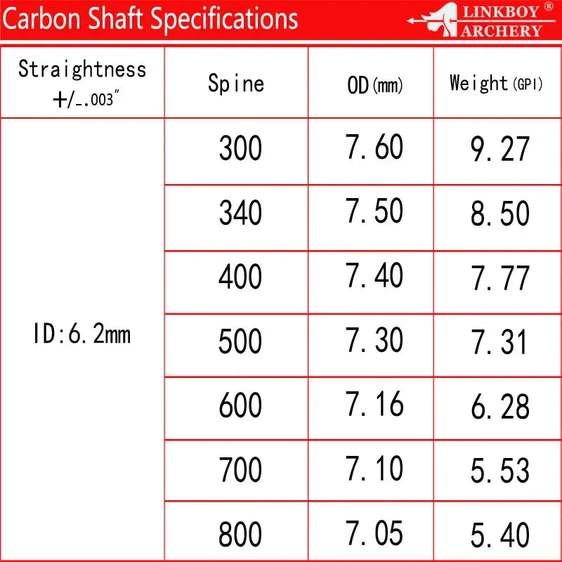 12pcs Linkboy Archery ID6.2MM gold Carbon Arrows Shaft Spine500-800 Archery Accessories