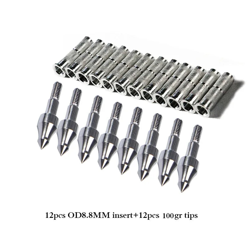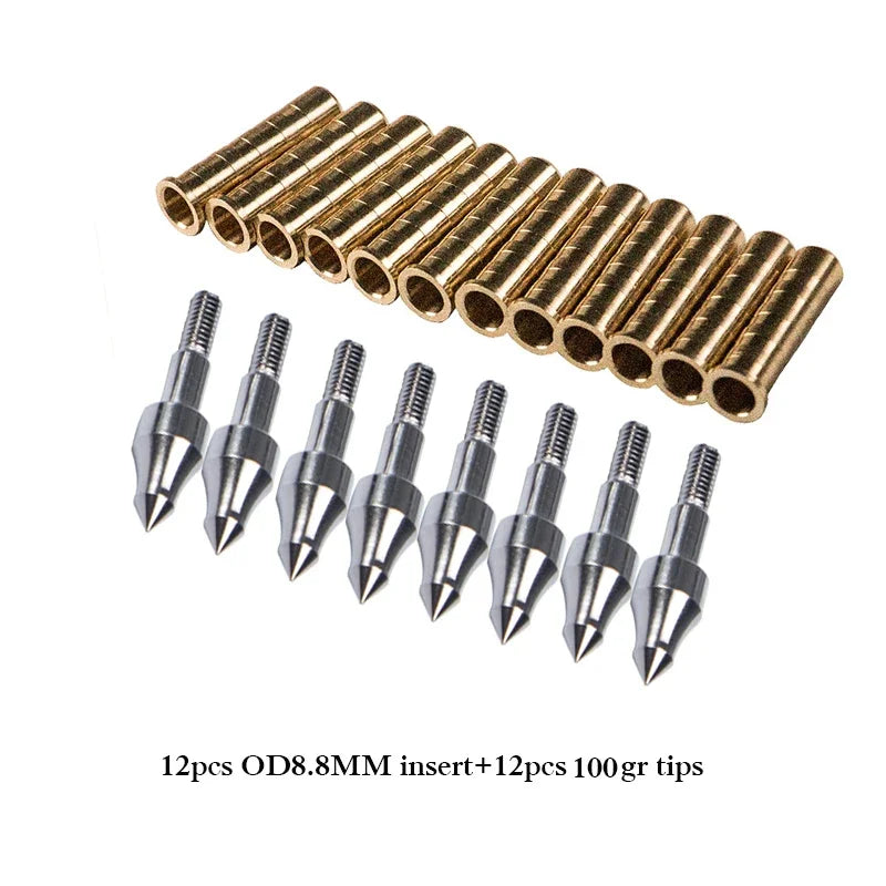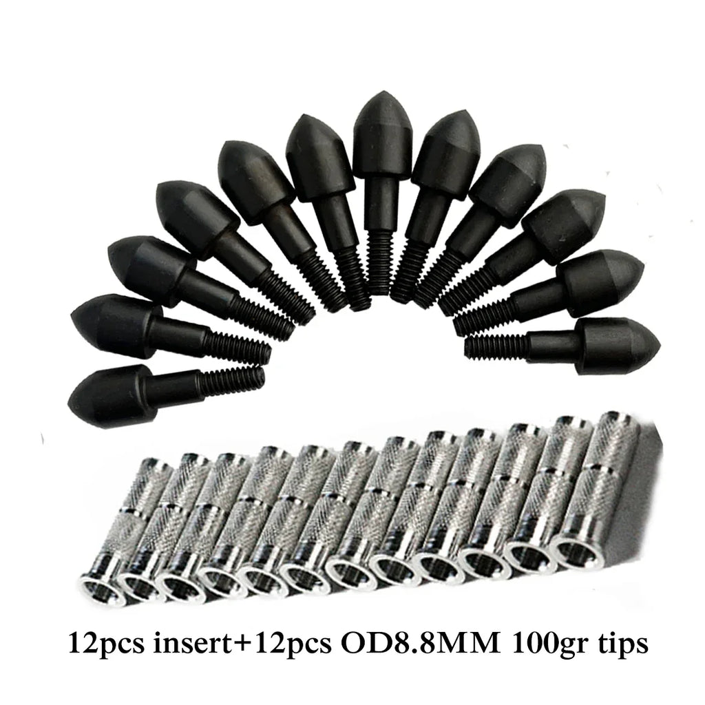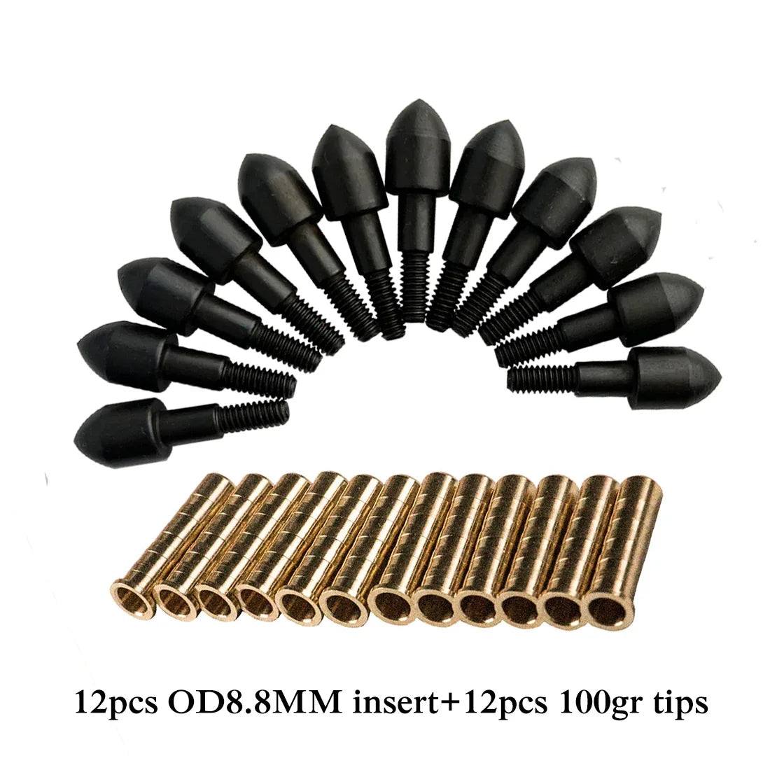 12Pcs ID7.6mm Copper Arrow Insert Shaft 12Pcs OD8.8mm Archery Target Point Tips 100gr Arrowhead Crossbow Shooting Hunting