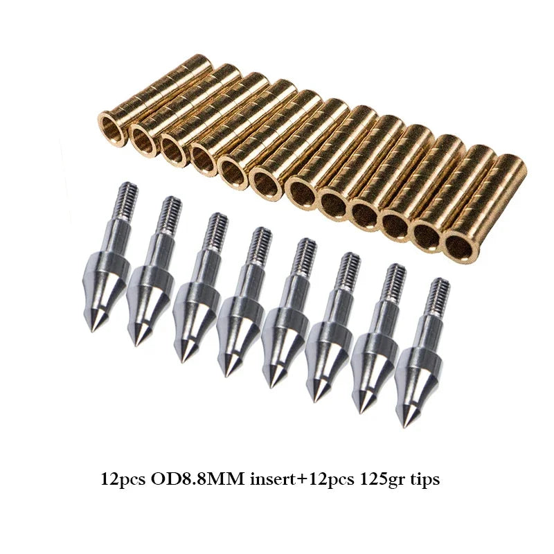 12Pcs ID7.6mm Copper Arrow Insert Shaft 12Pcs OD8.8mm Archery Target Point Tips 125gr Arrowhead Crossbow Shooting Hunting