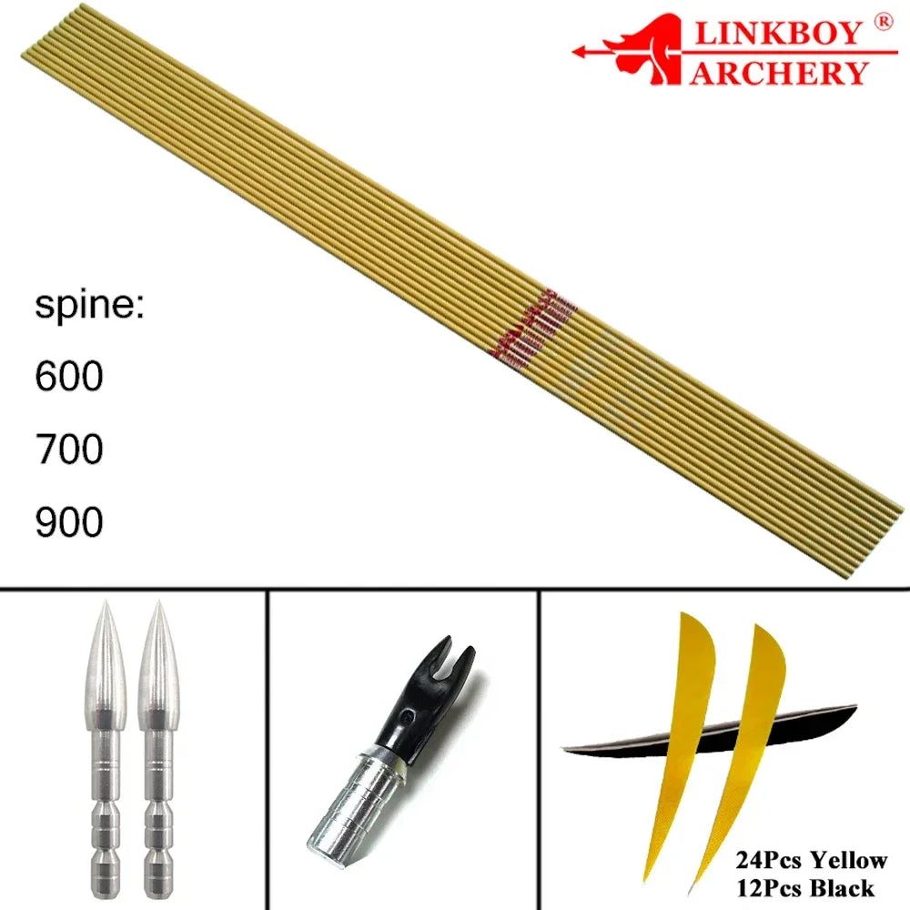 Linkboy Archery Carbon Arrows Bamboo Skin Sp600-900 30/32inch Longbow Recurve Bow Shooting 12pcs