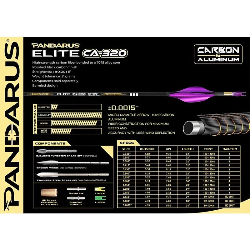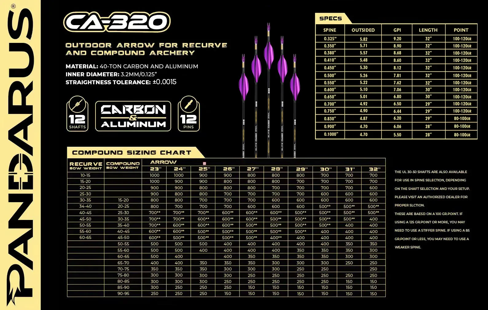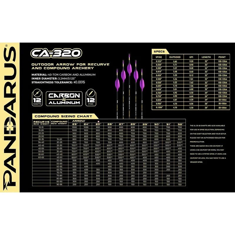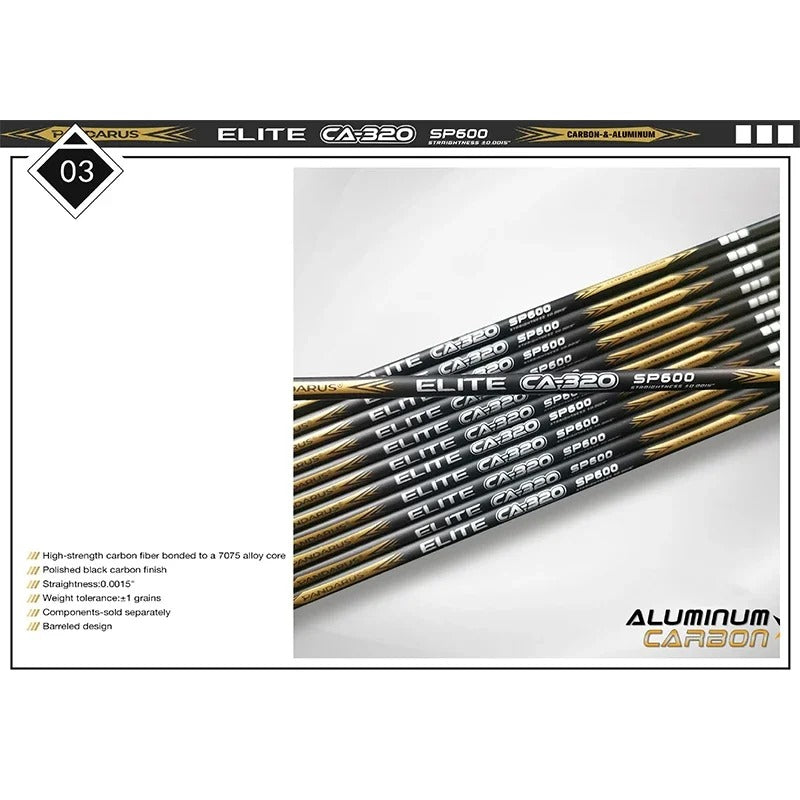 12Pcs -/+0.0015" Straightness ID3.2mm CA-320 Aluminum Shaft with Carbon Over Arrow Spine325-1000 for Hunting and Shooting