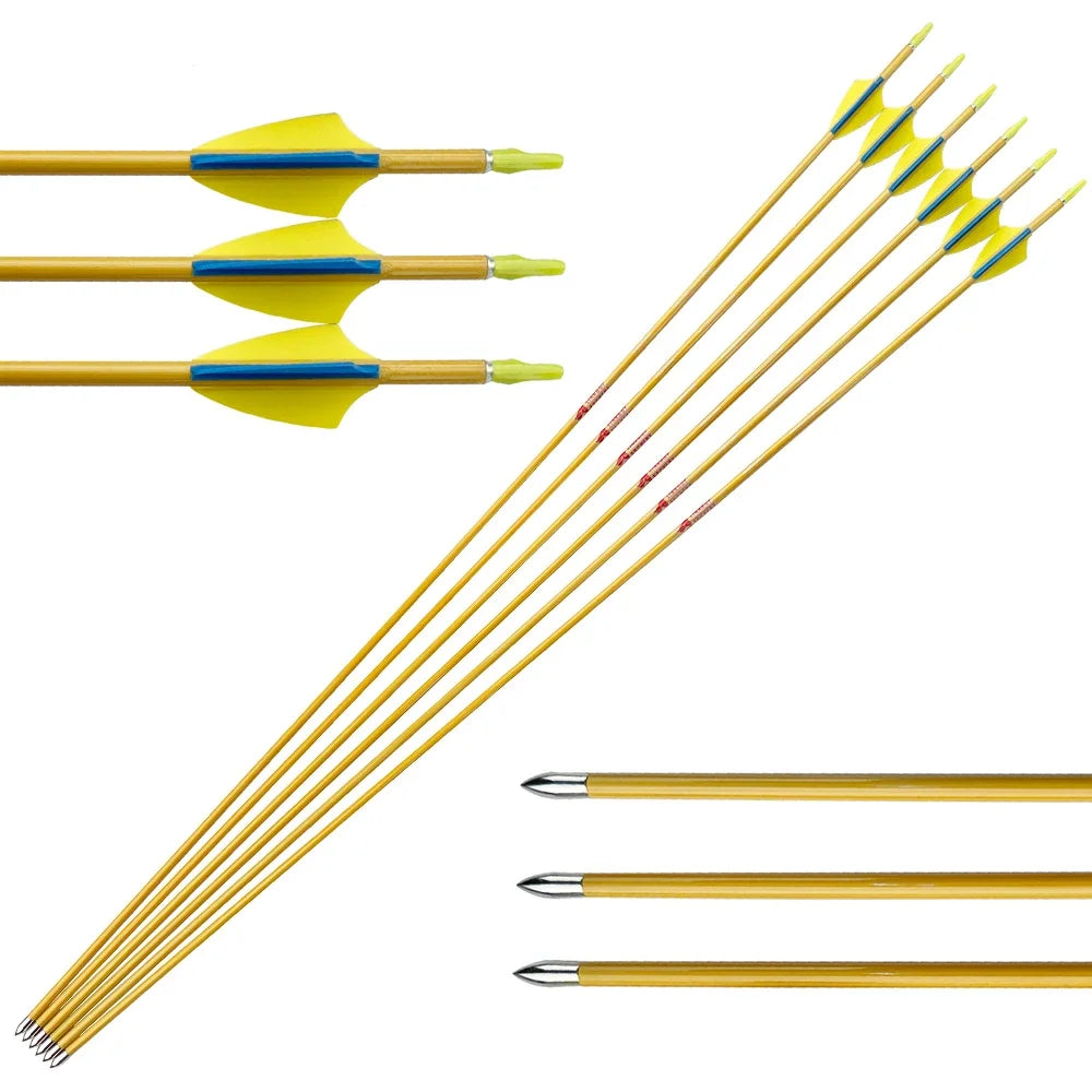 Pure Carbon Arrows Bamboo Skin, 1.75Inch,Plastic Vanes, Recurve Bow, Longbow Shooting, 12Pcs
