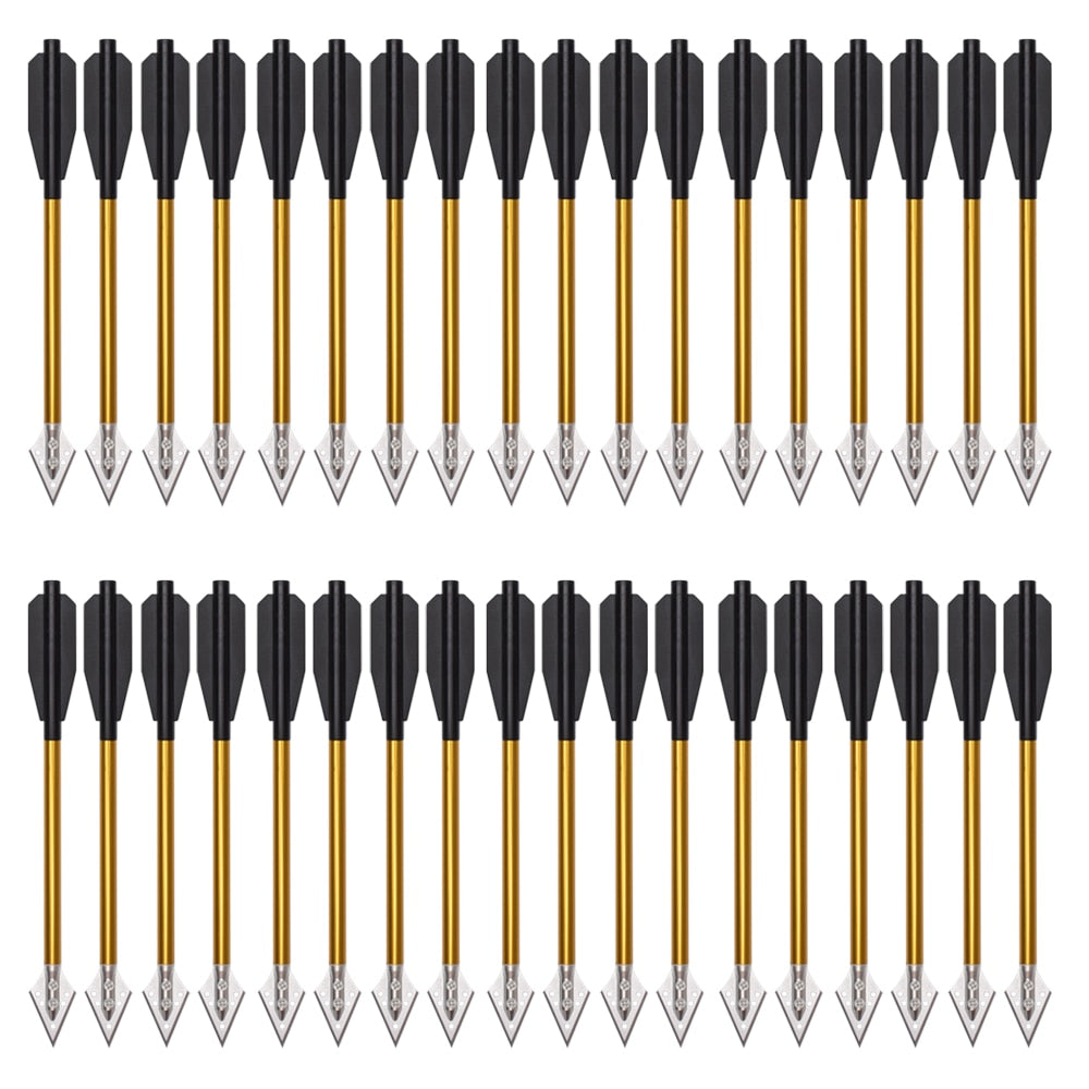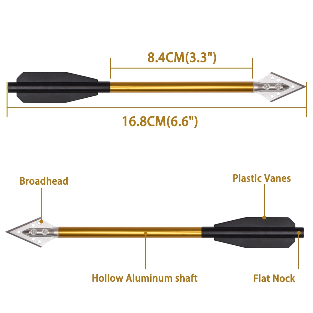 6.6 Inch/Pcs, Mini Crossbow Bolts/ Arrows for A Small Crossbow. Aluminum Shaft with Aluminum Broadhead, Aluminum Broadhead Capable of High Impact Power. Qualified Aluminum Made Sharp Crossbow Bolts for Precise Shooting, Archry Target Practice, Small Hunting Games. Do Not Shoot On Persons and Annimals.