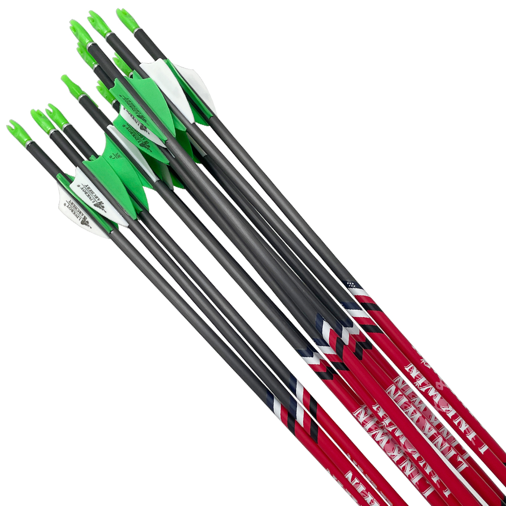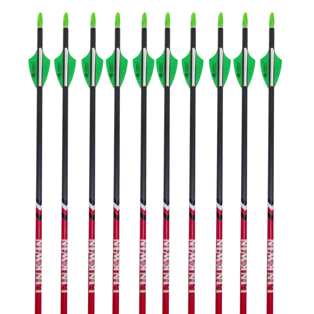12pcs Carbon Arrows ID4.2MM SP500-900 Straightness+/-0.001 1.75inch Plastic Vanes 80gr Tips Bow Shooting