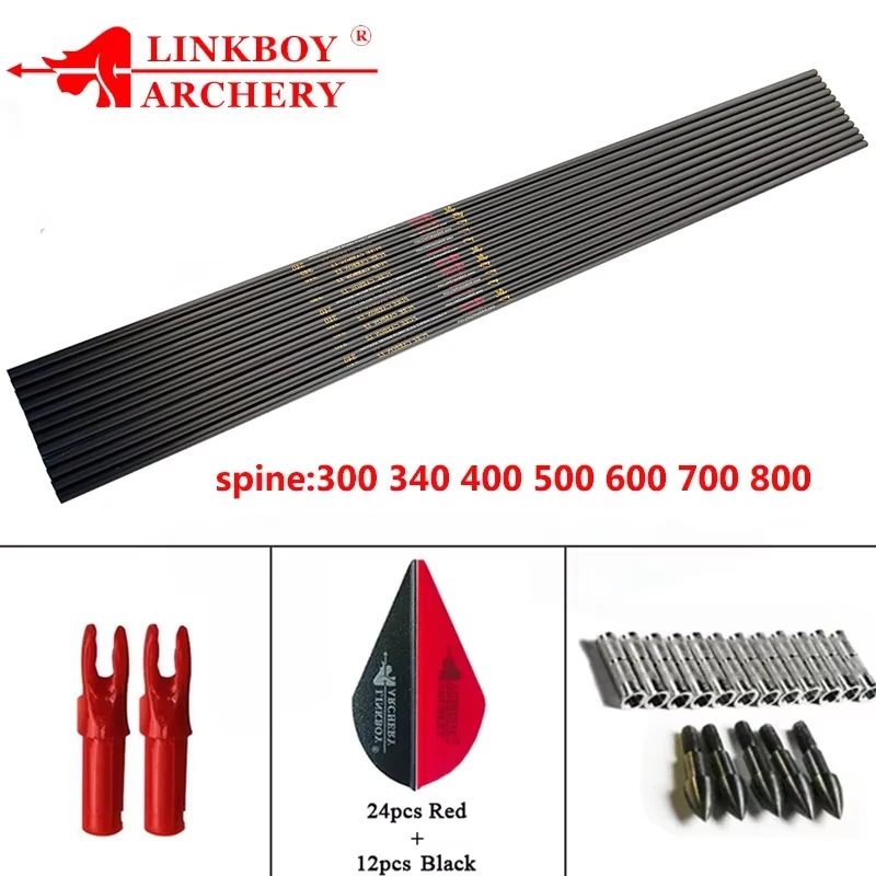 12pcs Linkboy Archery Carbon Arrow ID6.2mm Spine300-1000 2inch Plastic Vanes Compound Traditional Bow Hunting Shooting