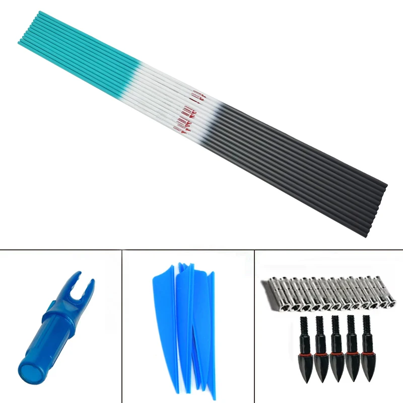 12pcs Linkboy Archery Pure Carbon Arrows ID6.2MM SP 340 400 500 600 700 800 75GR Tips Compound Bow Hunting