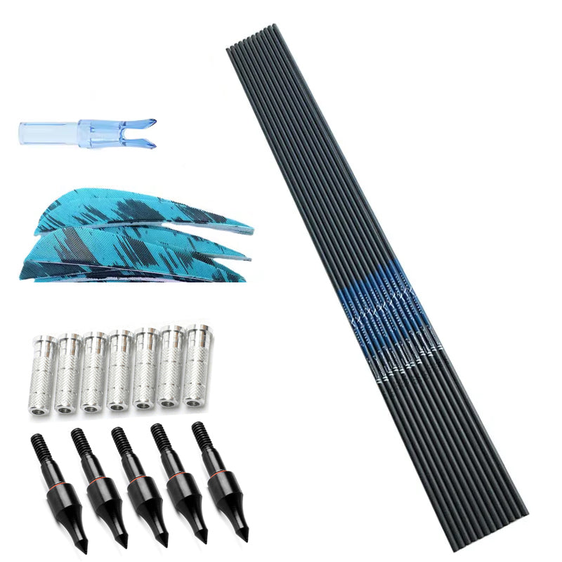 12pcs Linkboy Archery Carbon Arrows ID 6.2mm Sp300-800 4inch Turkey Feather Arrows Tips 100gr for Longbow Hunting