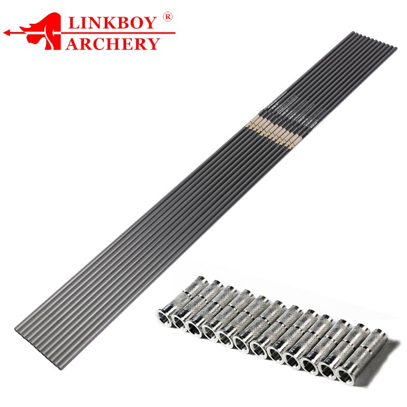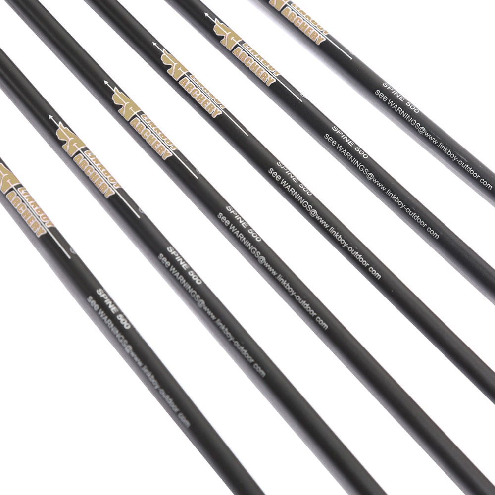 6/12pcs Linkboy Archery Pure Carbon Arrows Shaft Spine340- 600 ID6.2mm Insert Aluminium for Compound Traditional Bow Hunting