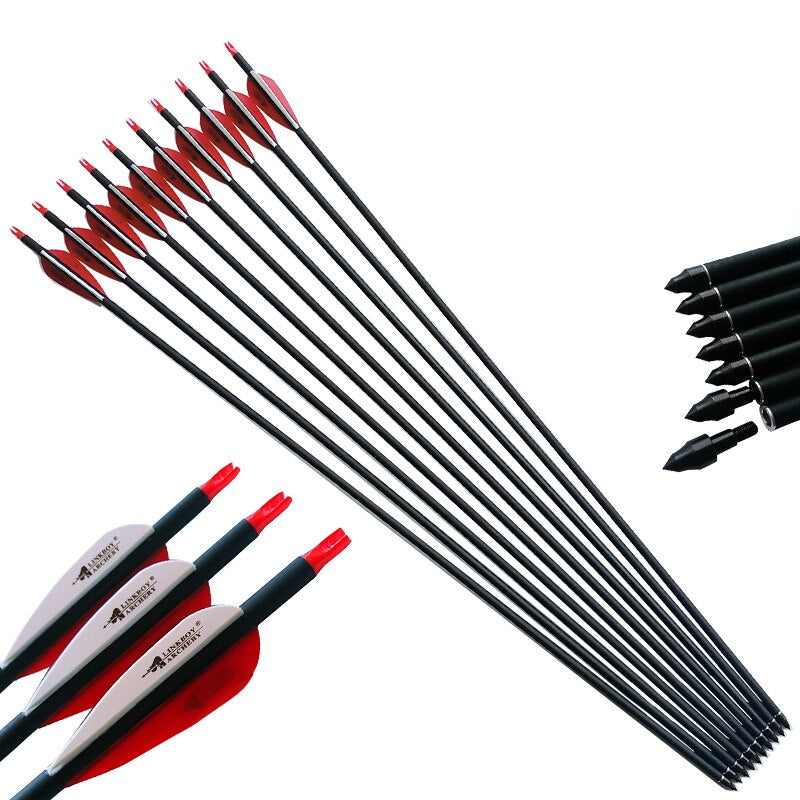 6/12/24pcs Linkboy Archery Mix Carbon Arrow Spine 500 28/29/30 Inch ID6.2mm Compound Traditional Bow Accessories Outdoor Hunting