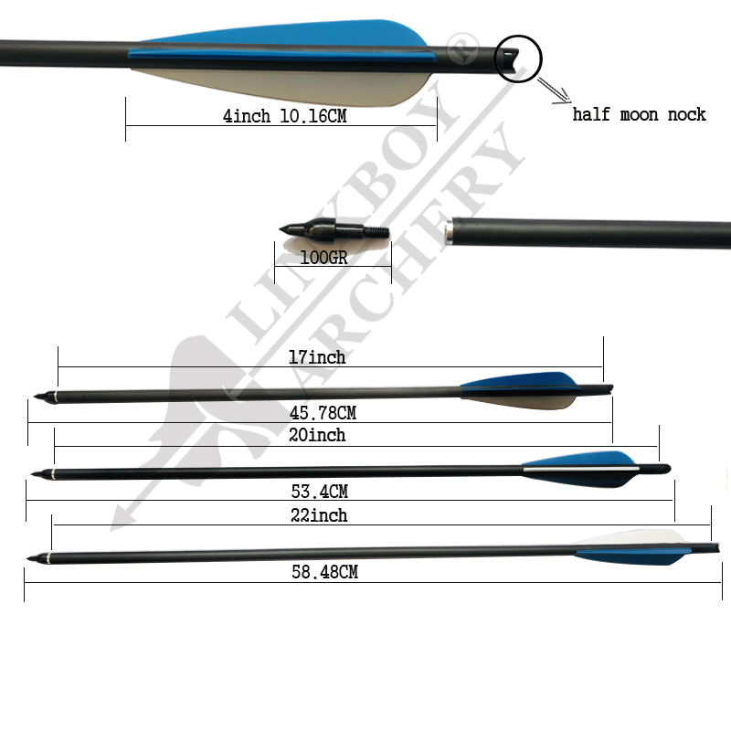 Linkboy Archery Carbon Arrows 17 Inch 20 Inch 22 Inch 4inch Plastic Vanes Crossbow Nock Hunting Crossbow Bolts Arrows Shooting