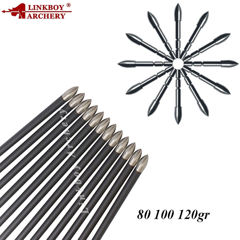 12pcs Linkboy Archery Insert ID4.2mm Carbon Arrows Shaft Arrowhead Target Point Tips 80gr 100gr 120gr Practice Hunting