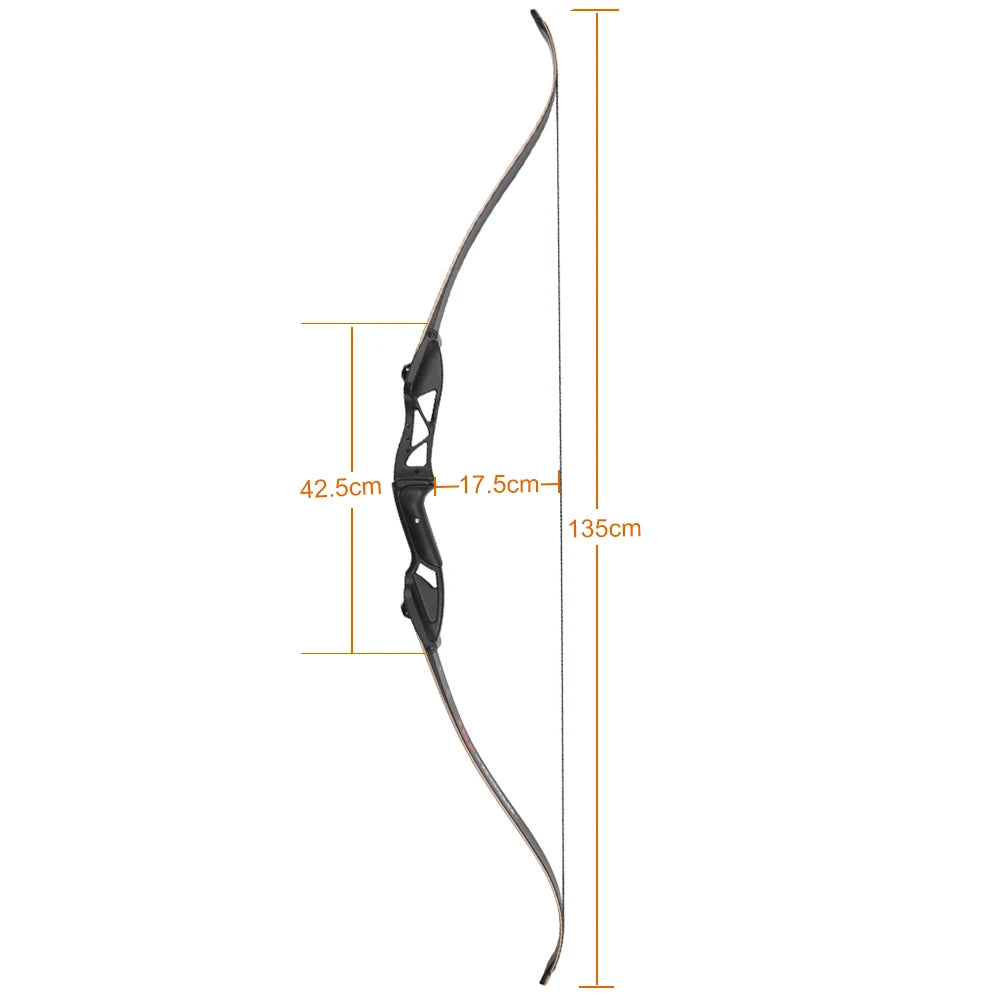 【Specification of Bow】Total lenght: 56", Max draw length: 30". Brace Height: 7.4 ", Draw Weight (lbs.): 30-50lbs.