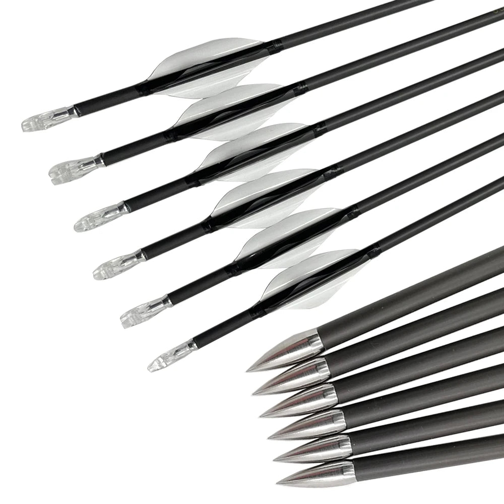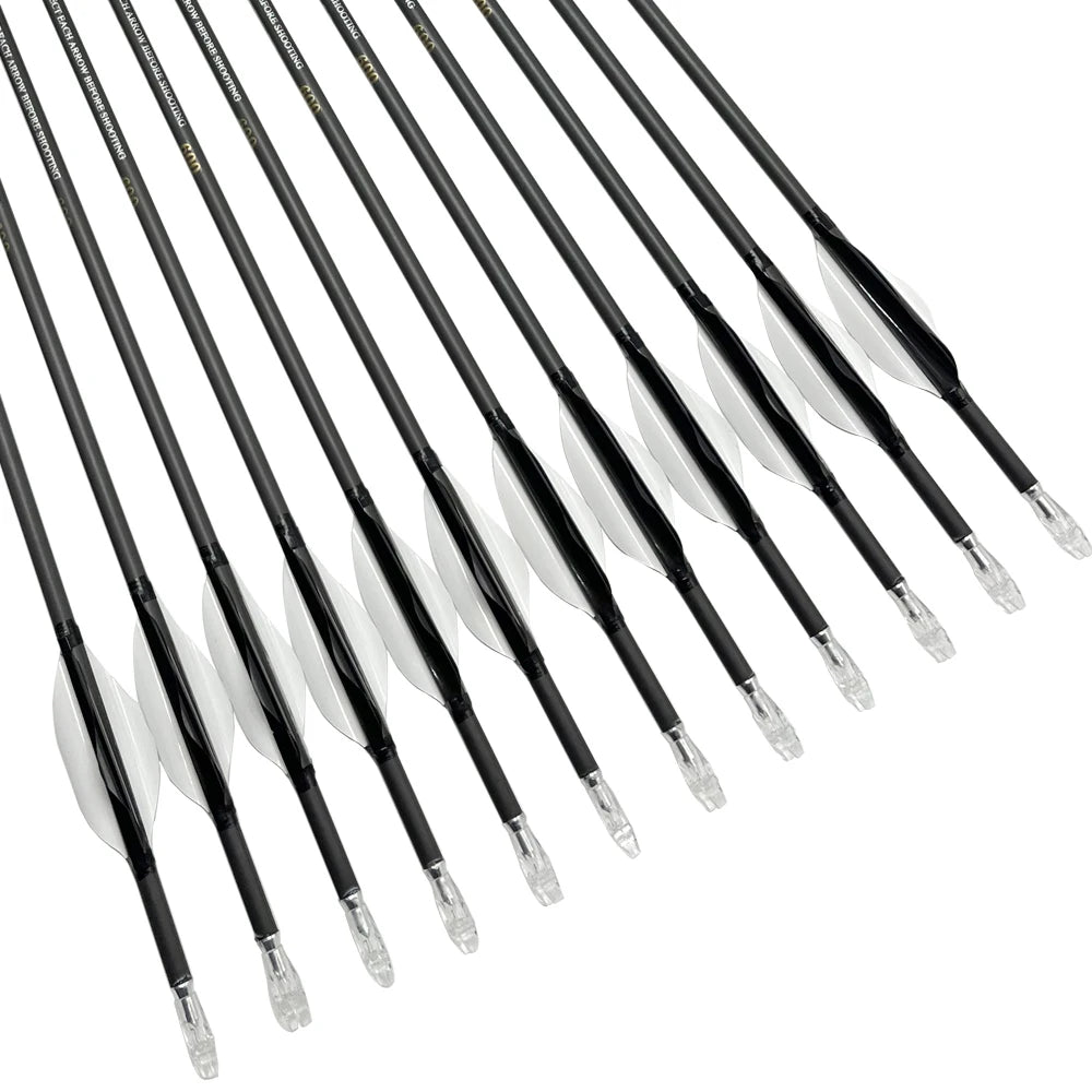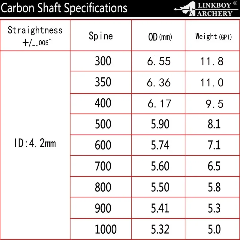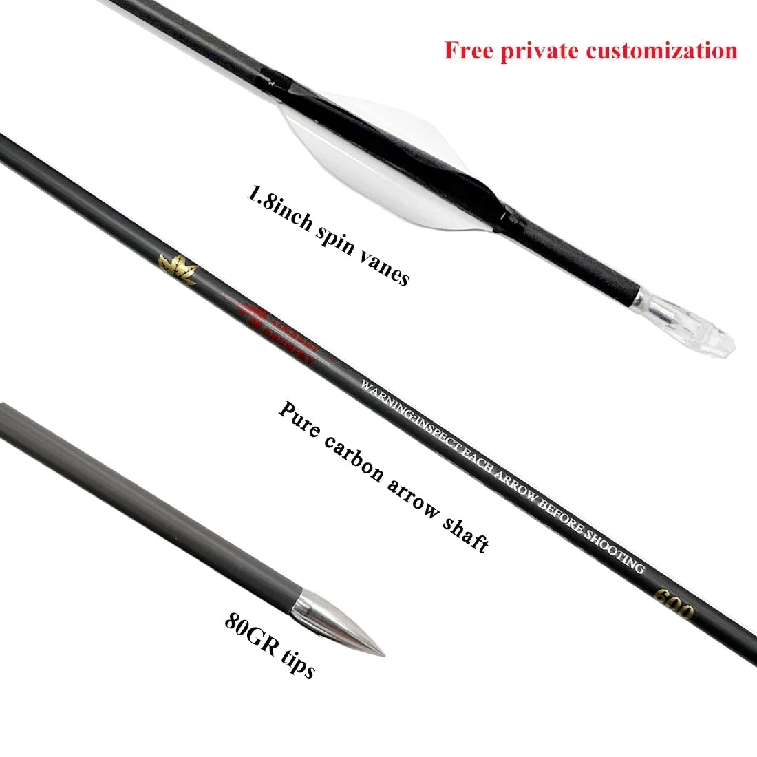 12pcs Linkboy Archery Pure Carbon Arrows ID4.2MM Spin Vanes Arrows Spine 400-1800 for Recurve Bow Hunting
