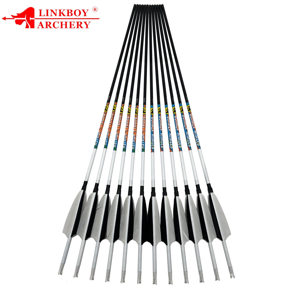 12PCS Carbon Arrow 30/32 Inch Carbon Arrows Replaceable Arrowhead for Compound/Recurve Bow Archery Hunting Targeting