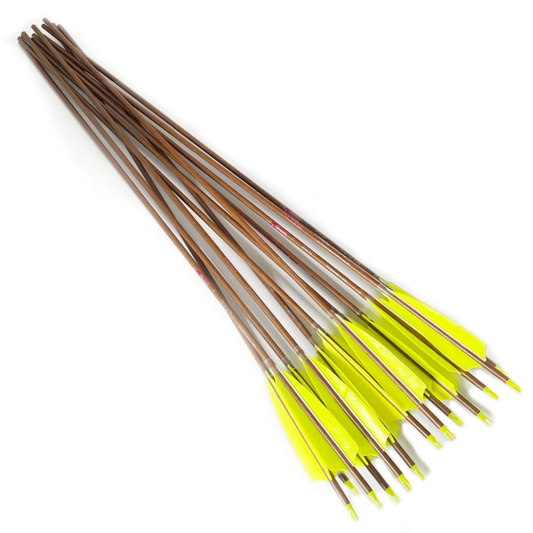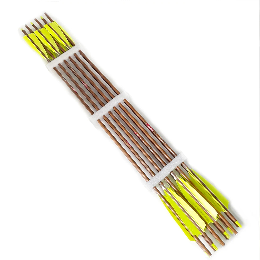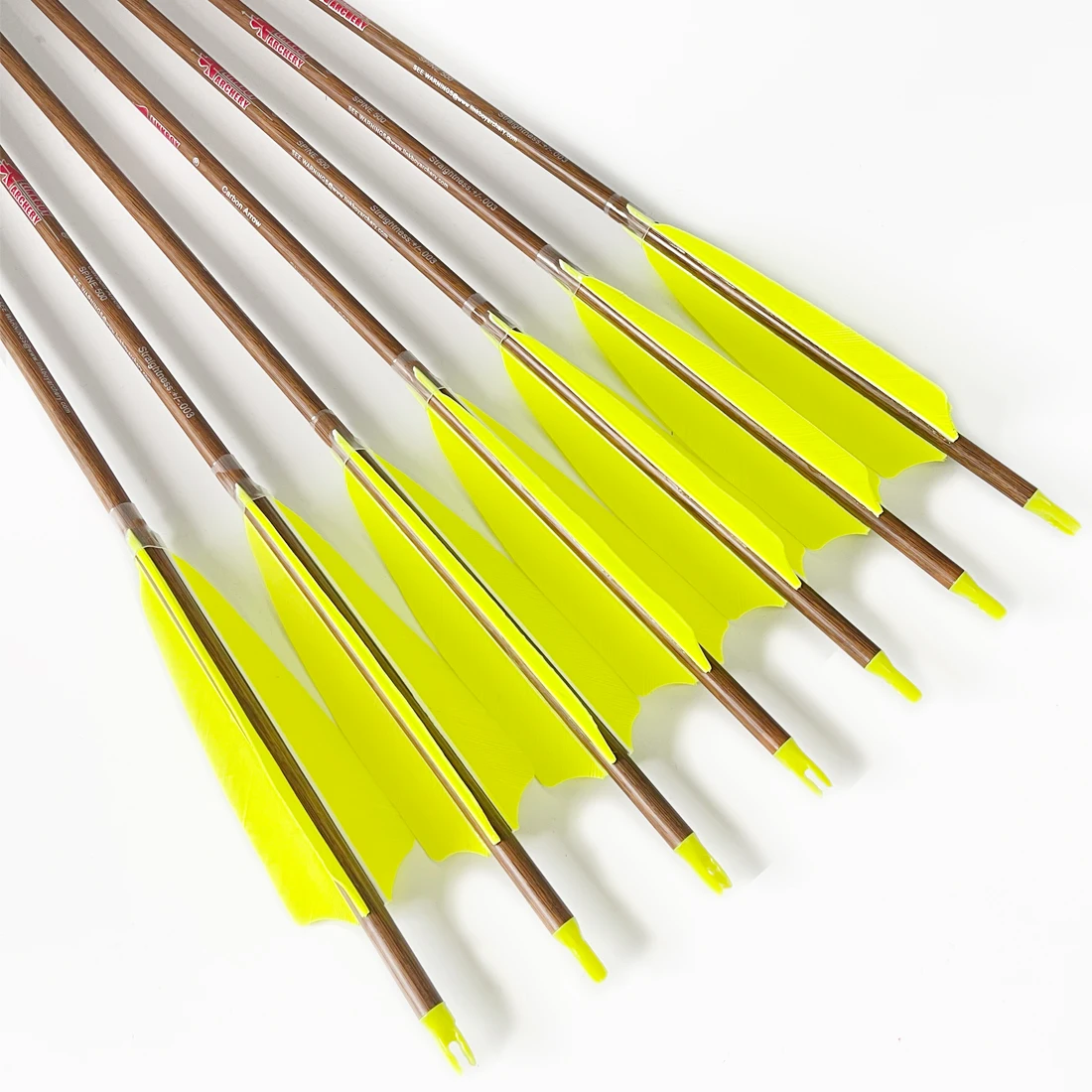 12pcs Carbon Arrow Wood Skin Archery for ID6.2mm 5inch Turkey Feather 75gr Tips for Compound Traditional Hunting