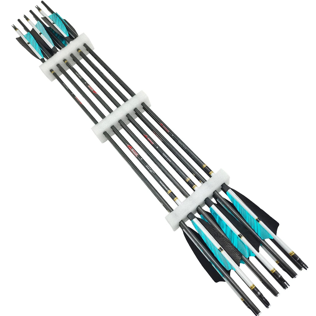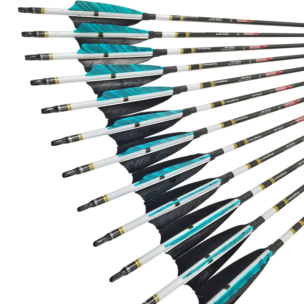 12pcs Pure Carbon Arrow ID6.2mm Spine 250-1000 32inch 4inch Turkey Feather Compound Traditional Bow Hunting Shooting