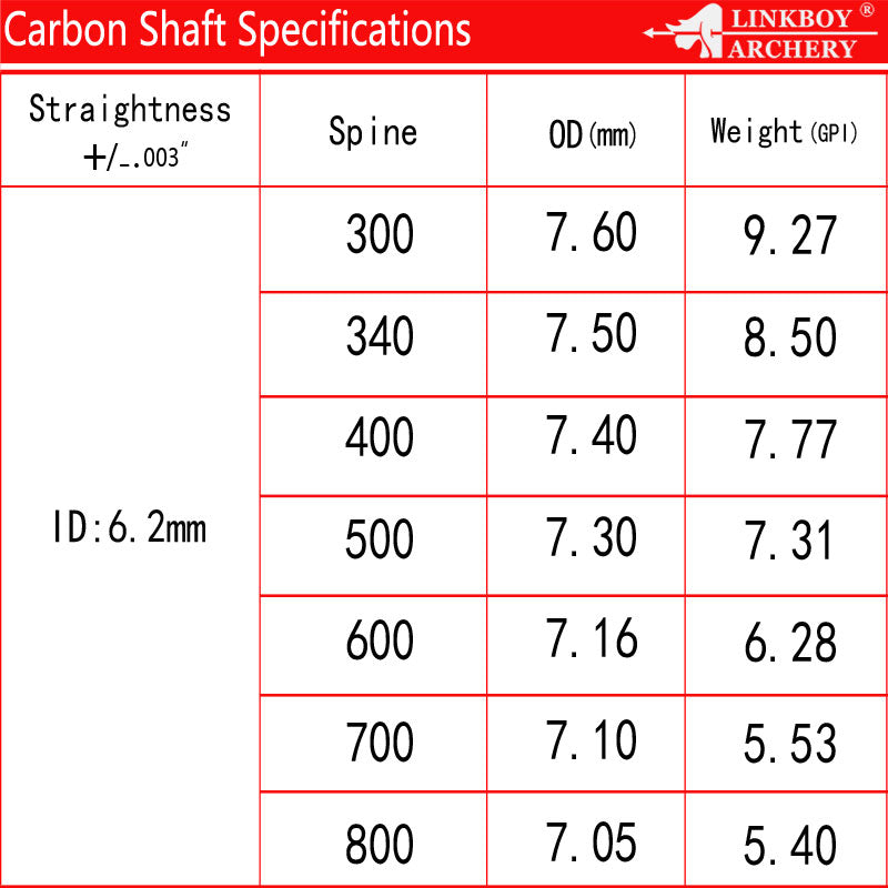 Seamless carbon arrow shaft for maximum durabilityAluminum inserts and target point, internal nocks included 100% pure carbon construction;for most archery compound bow/ recurver bow,traditional bowRated up to 70-lb. draw weight, for both fixed-blade broadheads and mechanical heads