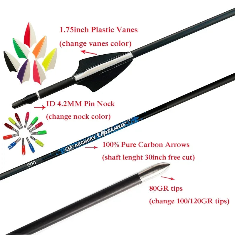 12pcs Carbon Arrow ID4.2mm Spine500 600 700 800 900 Arrow Accessories Recurve Bow Longbow Shooting Archery