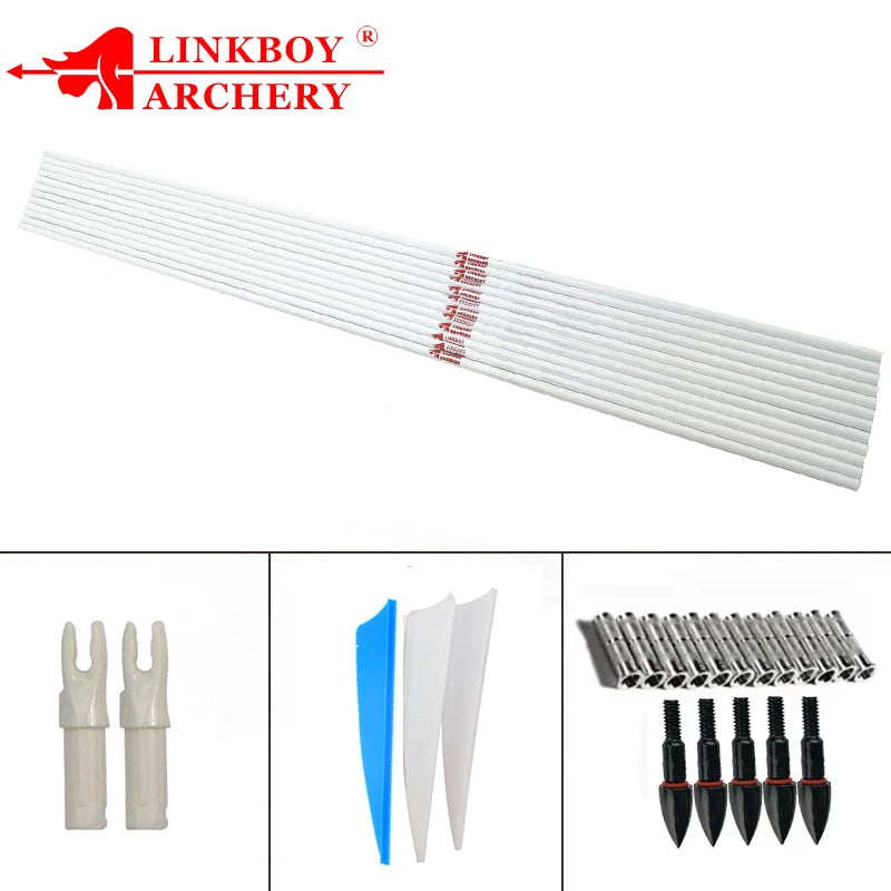 12PCS Archery Carbon Arrows ID6.2mm Sp400-800 3inch Vanes Insert Nocks Compound Longbow Bow Archery Hunting