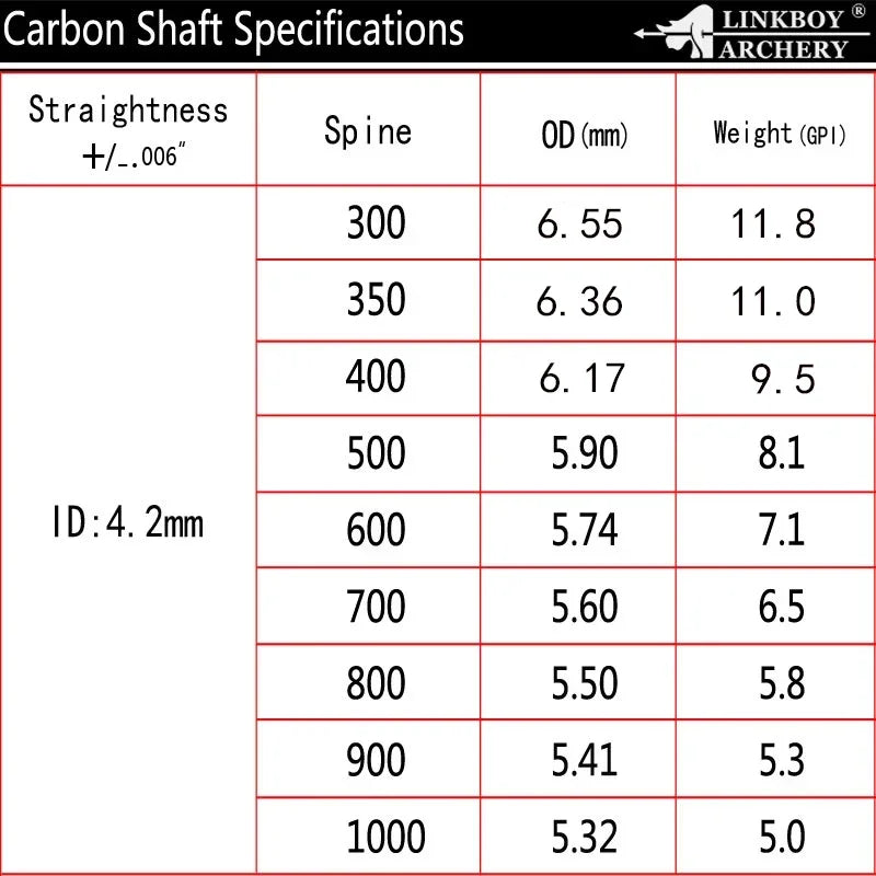 12pcs 30 Inch Spine 400 500 600 700 800 900 1000  Carbon Arrow Shaft ID 4.2mm Arrow for Hunting