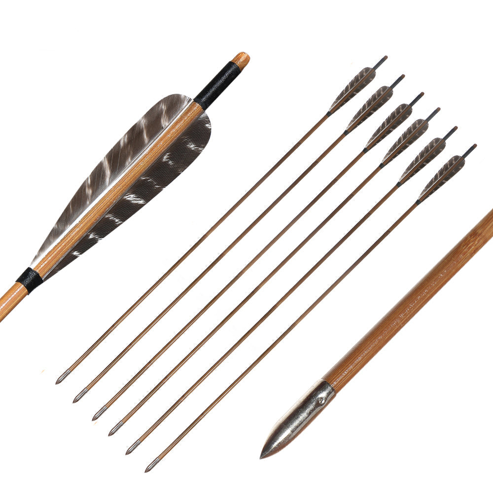 6pcs Linkboy Archery Handmade Bamboo Arrows 35inch Traditional Arrows 5inch Turkey Feather Hunting Arrows